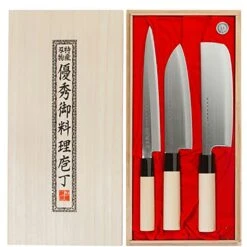 Satake Kaizen Messenset Pak Van Gyuto 21 Cm, Santoku 18 Cm & Petty 12 Cm
