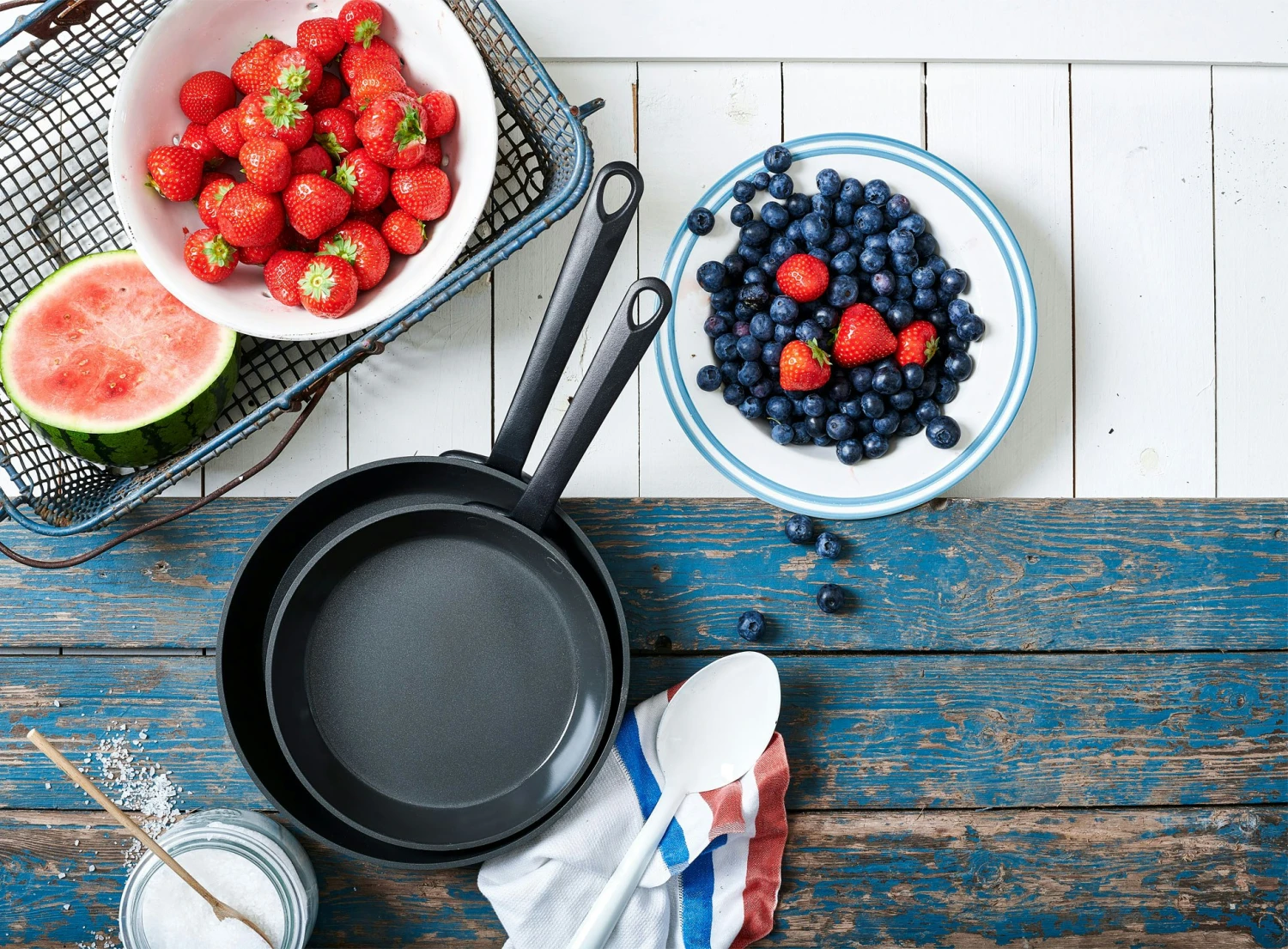 – De koekenpan komt in verschillende maten.