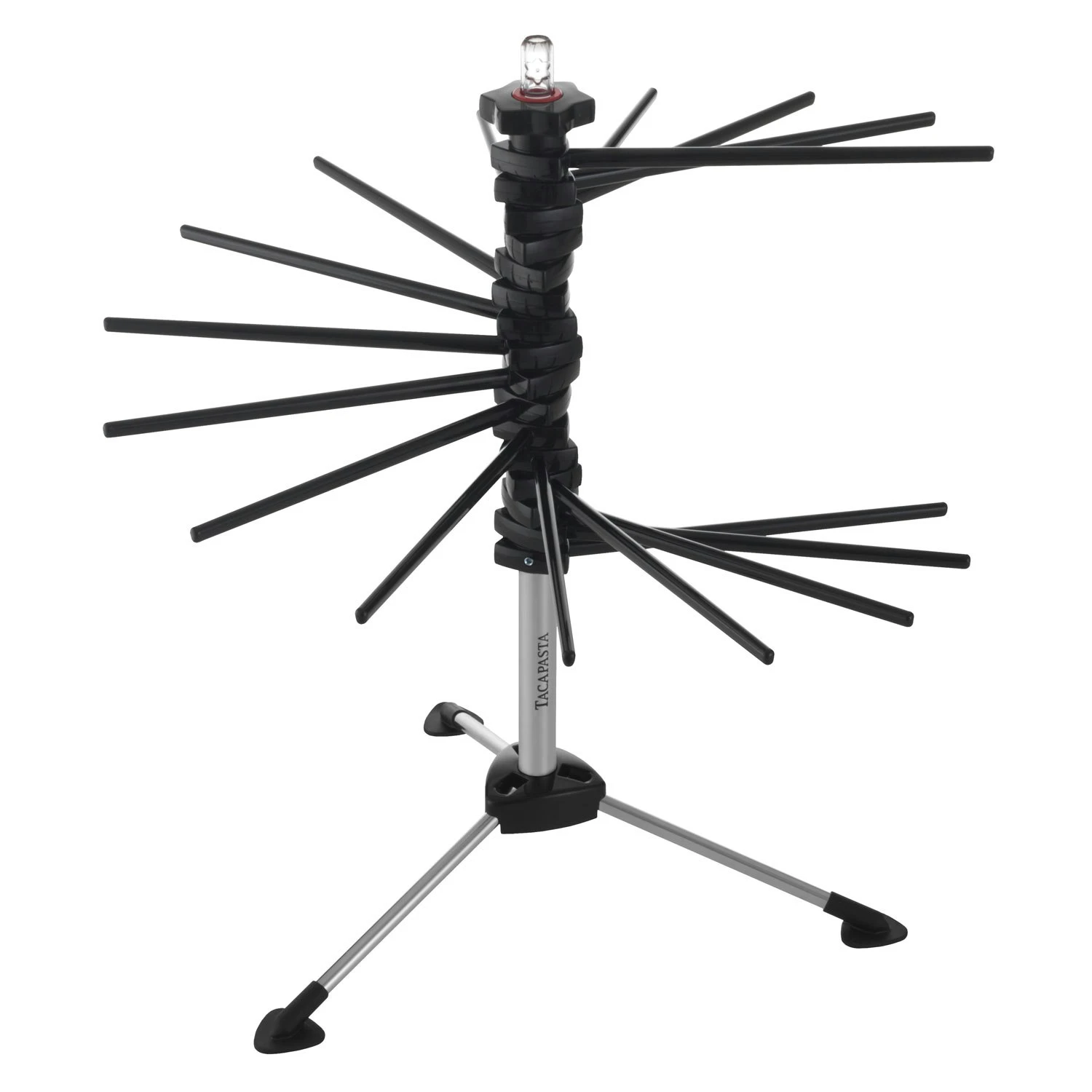 Wanneer je het pastadeeg hebt voorbereid en in de gewenste vorm hebt gesneden, is het Tacapasta-pastadroogrek van Marcato het optimale accessoire om de vers gesneden pasta op te slaan en te laten drogen voor het koken. 16 armen in de vorm van een ventilator hebben een capaciteit om tot 2 kg pasta te dragen en nemen zeer weinig ruimte in. Met een multifunctionele stang in het midden van het droogrek, maak je het gemakkelijk om de vers gesneden pasta uit de machine te vangen en leg je hem eenvoudig op een van de armen van Tacapasta om te rusten.